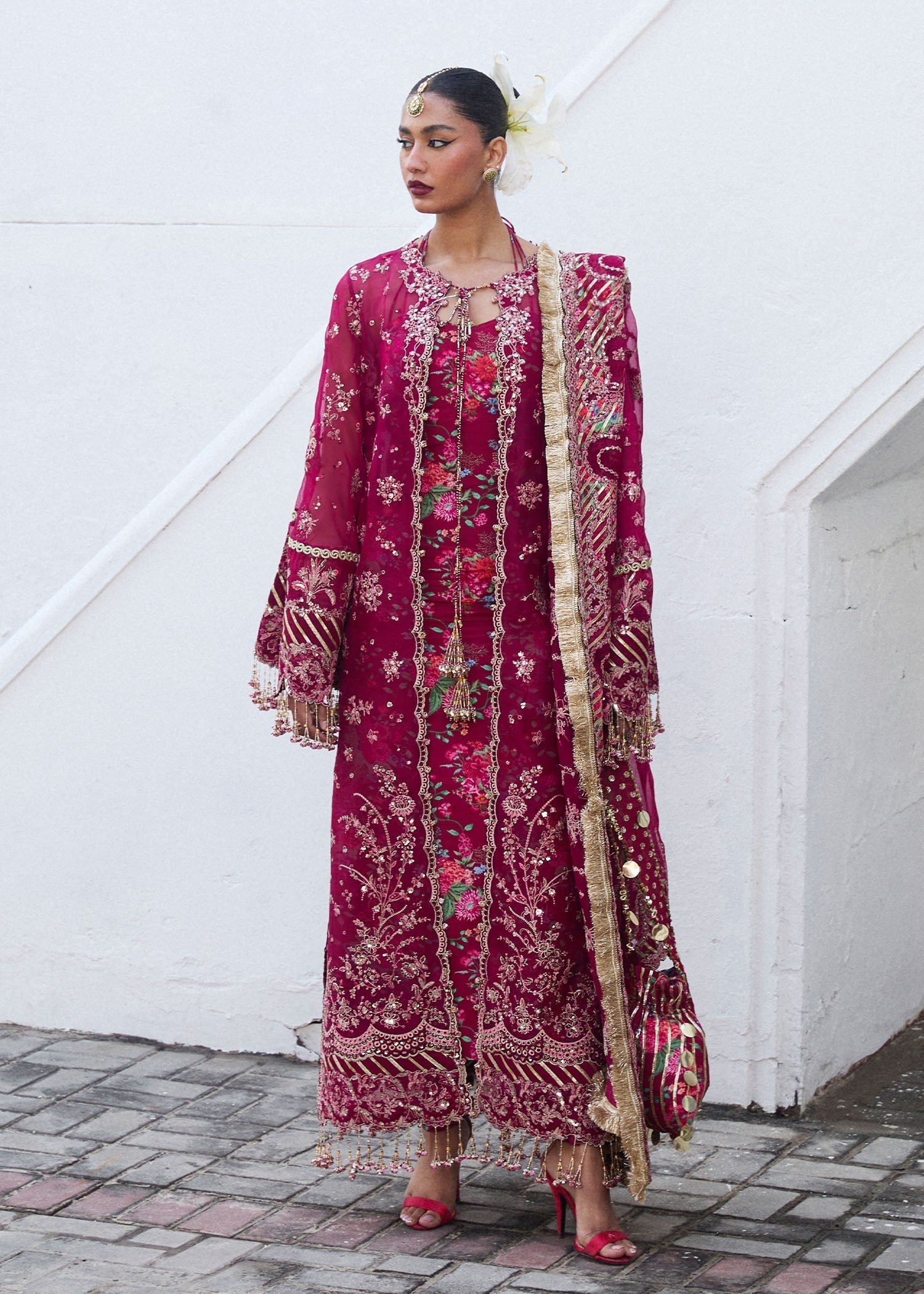 It is an embroidered organza jacket, which adds a touch of elegance and sophistication. The trousers are floral printed choridar style, which is perfect for a traditional and elegant look. The dupatta features embroidered four side borders, adding a beautiful finishing touch. This ensemble is definitely going to make you stand out on any occasion.