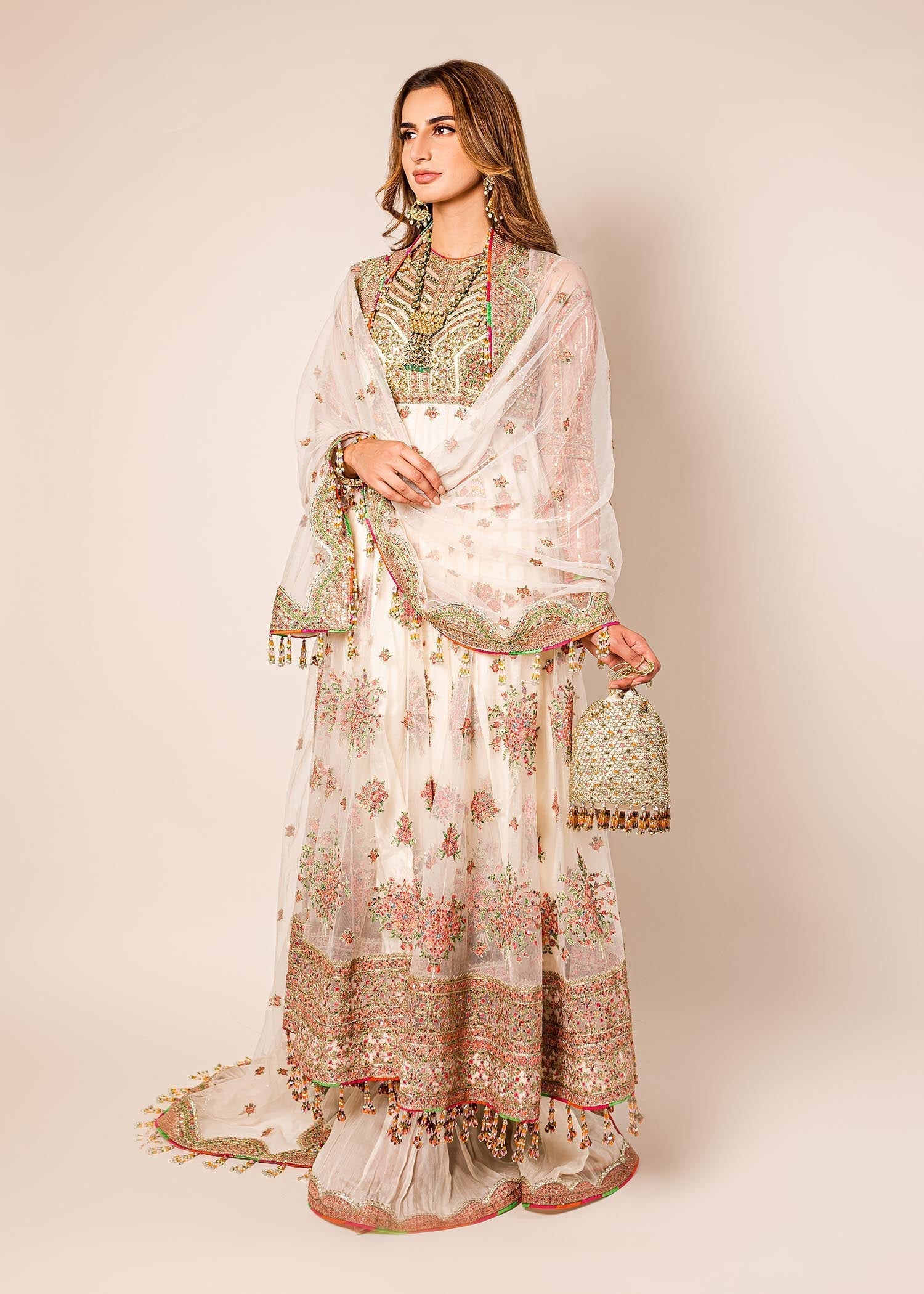- Embroidered Peshwas Panel (Net) 14 Pieces