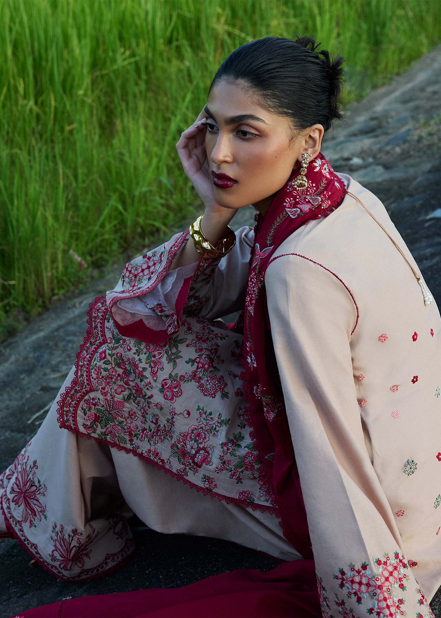 Soft meets striking in this stunning beige summer outfit, featuring statement sleeves and a beautifully tailored shalwar. The look is elevated with a vibrant hot pink embroidered dupatta that adds the perfect pop of color. Effortlessly chic and made to stand out in every gathering.