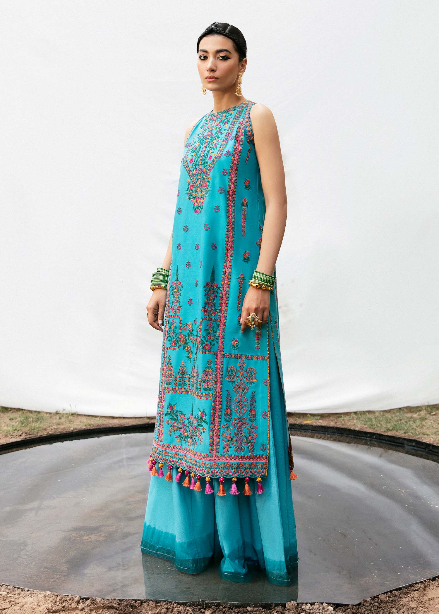 Note: We Offer this collection in XS, S, M, L and XXL Sizes. We're not offering any stitching facility. Tassels are not included in the outfit.